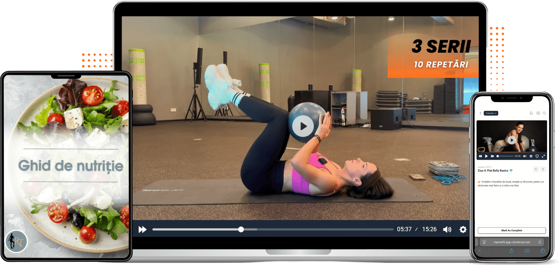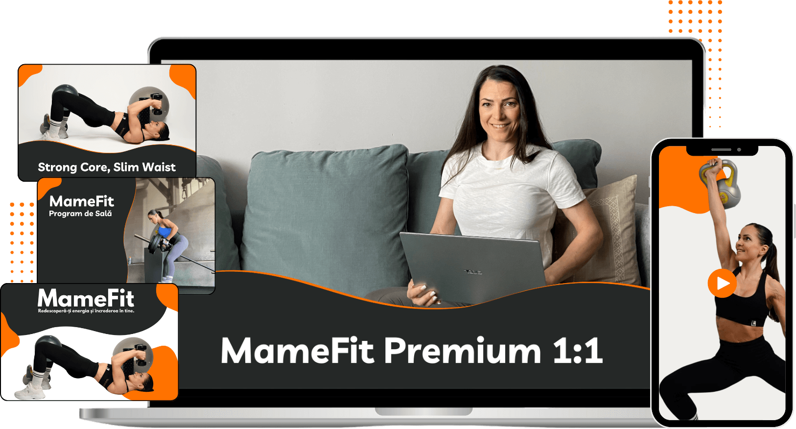 Ai acces la toate programele MameFit, plan alimentar adaptat și suport zilnic - ca într-un antrenament personal real, dar online.